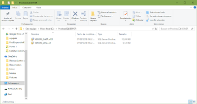 Como ven, se crearon correctamente los archivos, en la ruta indicada y con el tamaño indicado, de esta manera ya creamos una base de datos con parámetros un poco más avanzados. Pero hay más, aun no hemos llegado al punto de este post, como crear archivos secundarios para distribuir los datos, pues bien, esto nos lleva al segundo ejemplo